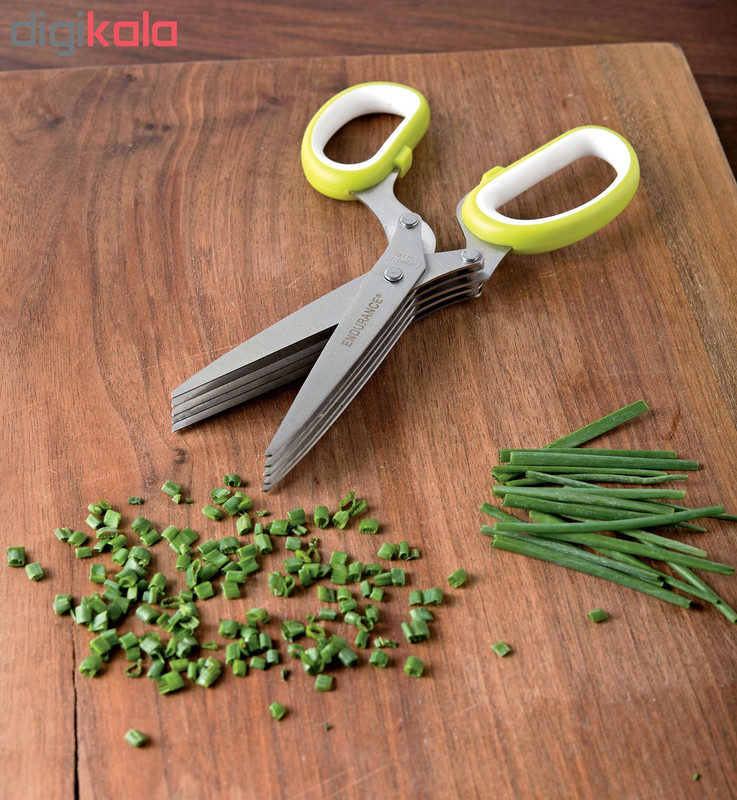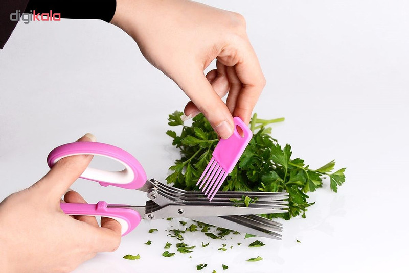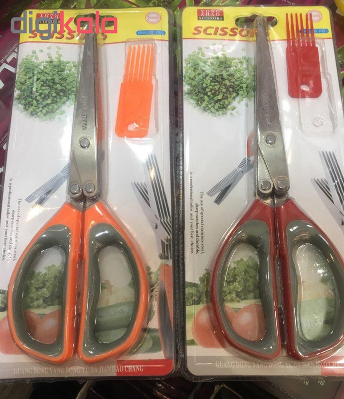 قیچی سبزی خرد کن ، یک قیچی 5 لایه، خرد کننده انواع سبزیجات در ابعاد یکسان است و علاوه بر تسریع فرآیند خرد کردن با ایجاد برش های یک اندازه، سفره کدبانوی خانه را زیباتر می نماید. قیچی سبزی خرد کن scissors yong zhao یک ابزار مناسب و فوق العاده با کیفیت جهت خرد کردن، دارای 10 تیغه بسیار تیز برای کاربرد های مختلف،خردکننده انواع سبزیجات مانند کاهو،کلم و پیاز بدون له کردن آنها می باشد. تیغه های قیچی از استیل ضد زنگ ساخته شده اند، جنس دسته آن پلاستیکی است و مانع سر خوردن قیچی از دست می شود.