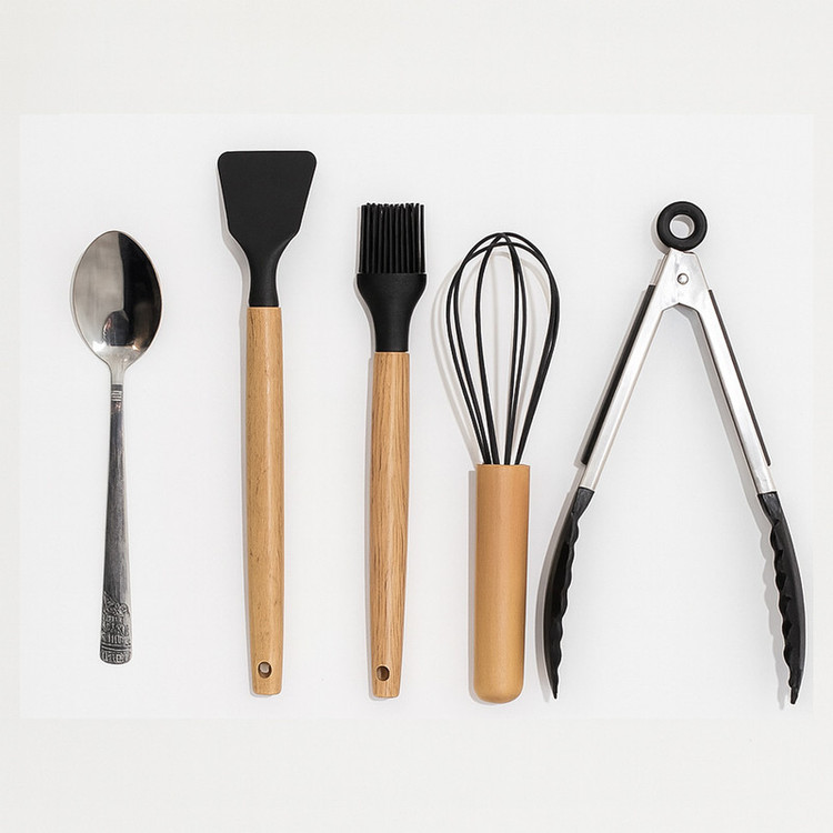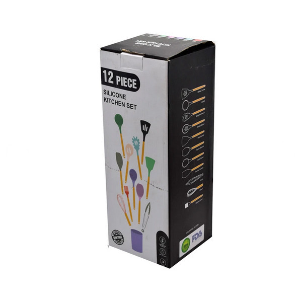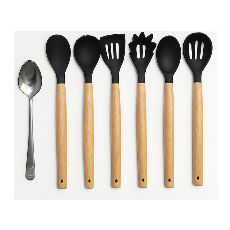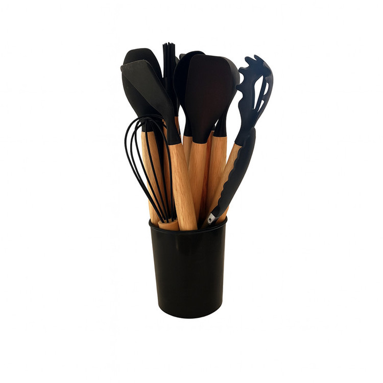 سرویس کفگیر و ملاقه سیلیکون و چوبی 12 پارچه مدل سایه