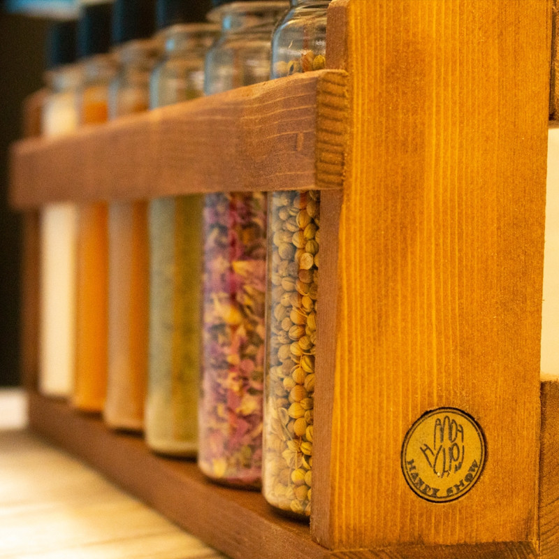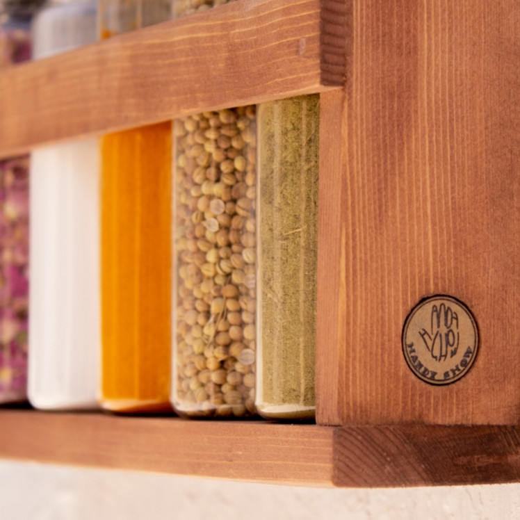 جای ادویه 6 پارچه هَندیشو مدل avina کد T3 ساخته شده از چوب به همراه 6 عدد ادویه ماش با درب پیچی 3 حالته با قابلیت شست و شو ظروف ادویه پاش . قابلیت استفاده به صورت دیواری و رومیزی .
