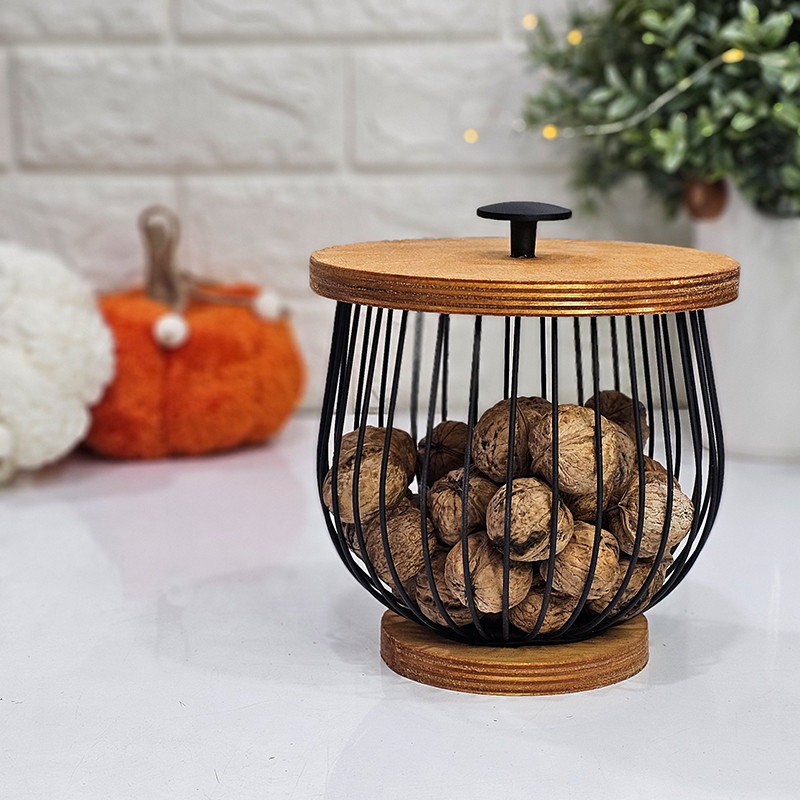 سبد گردو مدل بلوط در چوبی