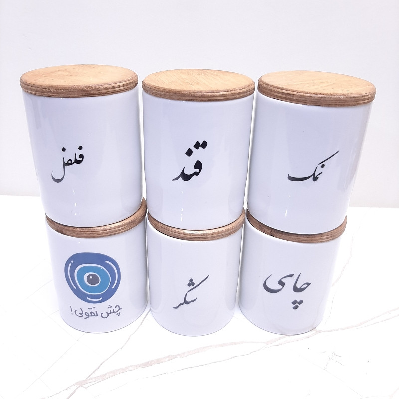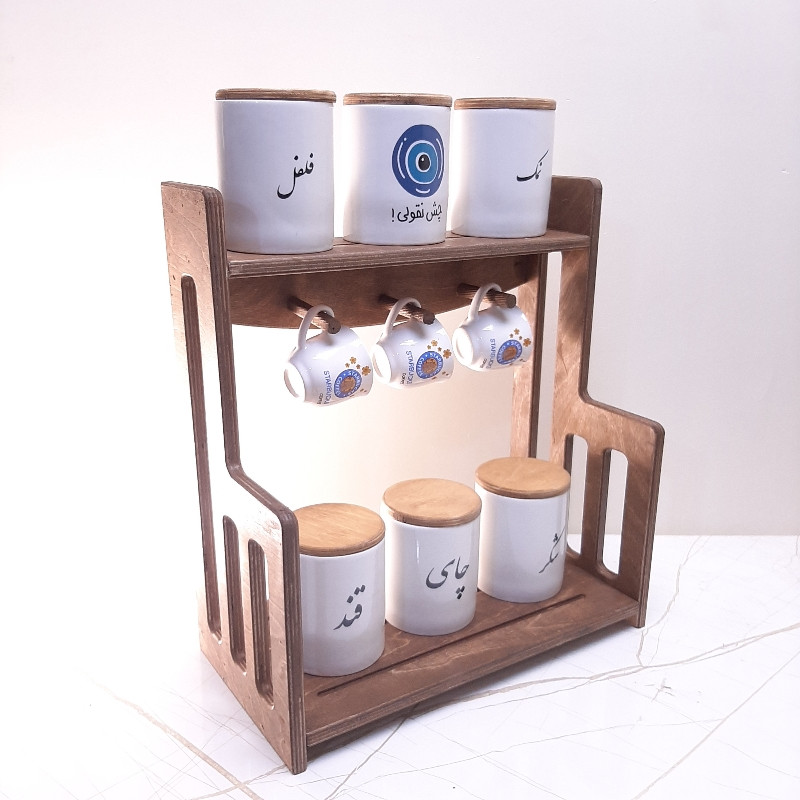 این ست تشکیل شده از یک عدد پاسماوری چوبی به ضخامت 12 میل از جنس چوب پلی وود و 6 عدد بانکه از جنس چینی به سایز 8x10 با فونت فارسی با درب چوبی و 3 عدد کاپ قهوه خوری می باشد کل این مجموعه قابل شستشو می باشد