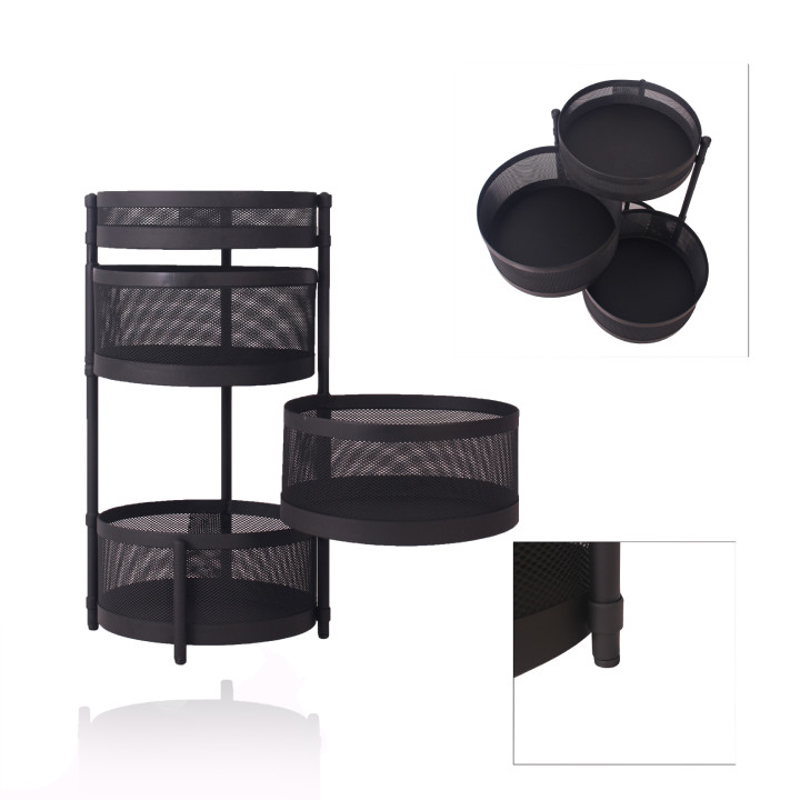 این سبد سه طبقه بوده که به آن سه و نیم طبقه هم گفته می شود. طبقه پایین آن کاملا ثابت بوده و دو طبقه دیگر به صورت گردان باز و بسته می شود و نیم طبقه بالای این سبد سیب زمینی و پیاز ساین به صورت سینی است.