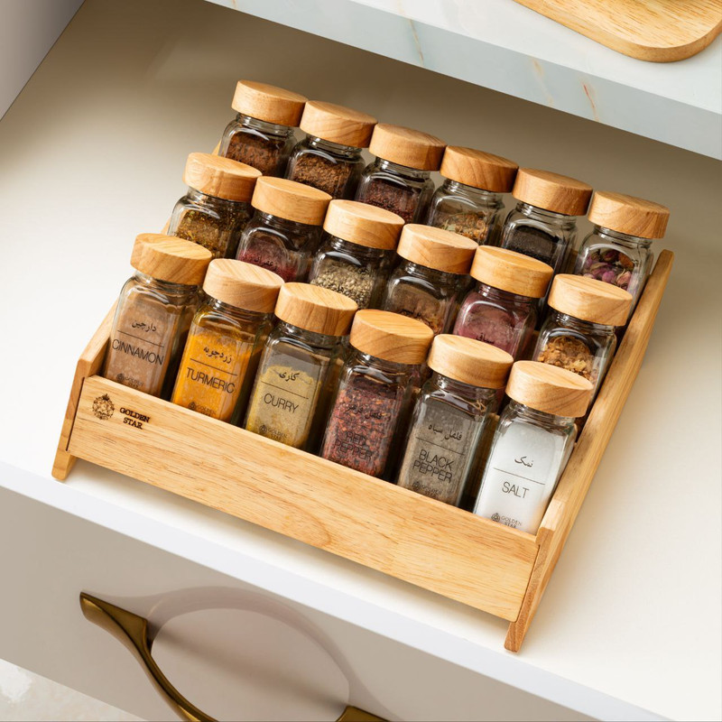 دستهبندی: جای ادویهجنس درپوش ادویه: چوباستند یا پایه: داردابعاد: 5x5x12 سانتیمتروزن: 760 گرمتعداد جای ادویه : 18 پارچهجنس بدنه : شیشهجنس استند، پایه یا سینی : چوبنمایش بیشتر