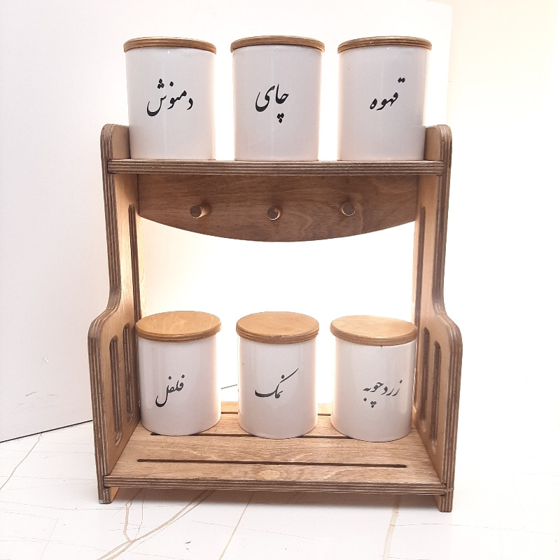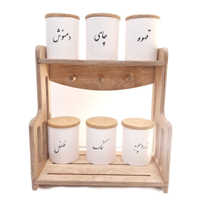این ست تشکیل شده از یک عدد پاسماوری چوبی به ضخامت 12 میل از جنس چوب پلی وود و 6 عدد بانکه سرامیکی به سایز 9x12 با فونت فارسی با درب چوبی می باشد کل این مجموعه قابل شستشو می باشد