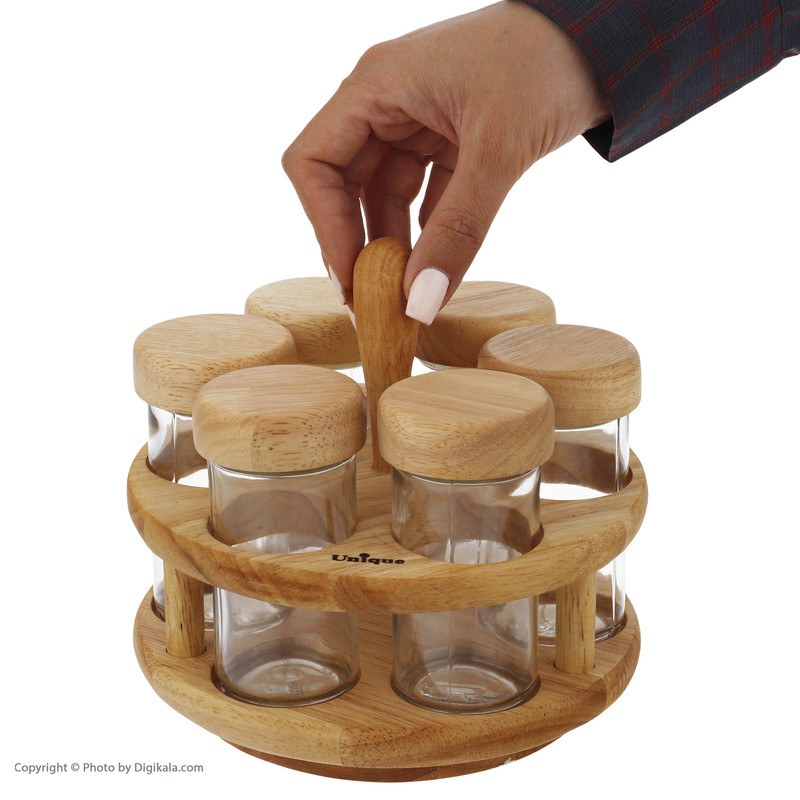 ست جا ادویه 6 پارچه یونیک طرح چوبی مدل 6119A
