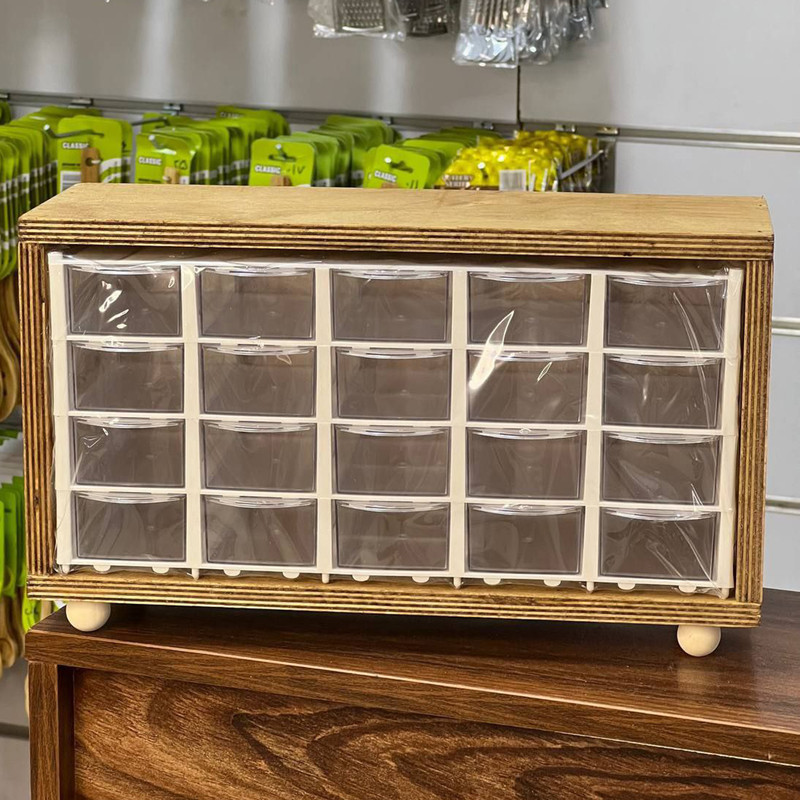 جاادویه با باکس چوبی، چوب آن ضدآب است و باکس داخلی از جنس اکرولیک درجه یک و شفاف است.