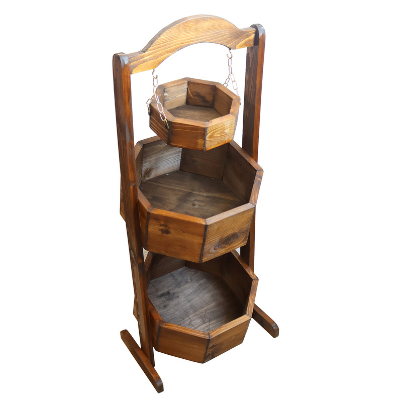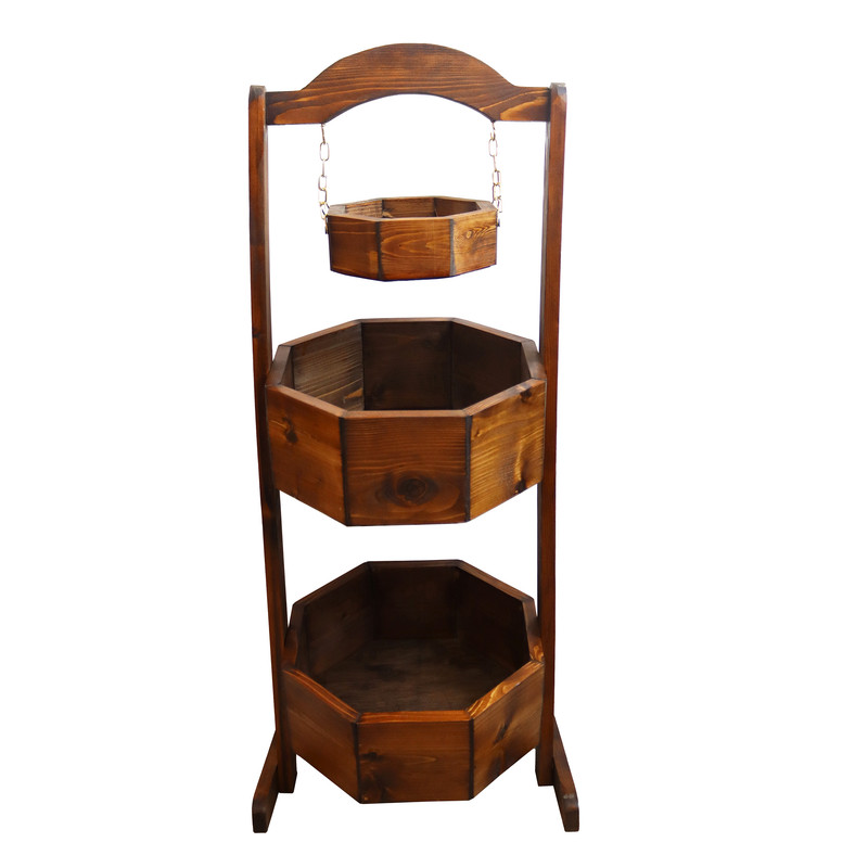 سبد سیب زمینی پیاز پنج ضلعی دارای سه سبد می باشد ابعاد کلی محصول 75x30x30 برای نگهداری انواع سیب زمینی و پیاز شامل 2 طبقه 27x27به عمق 11 سانت و یک طبقه به ابعاد 16x16به عمق 5 سانت می باشد