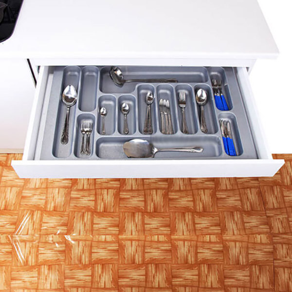 تقسیم کننده کشو پی وی سی یکی دیگر از محصولاتی است که به نظم کشو های کابینت کمک میکند.تقسیم کننده کشو پی وی سی دارای فضای های مختلفی است از جمله جا کفگیری،جا قاشق و چنگال حتی فضا برای قاشق های کوچک و ….