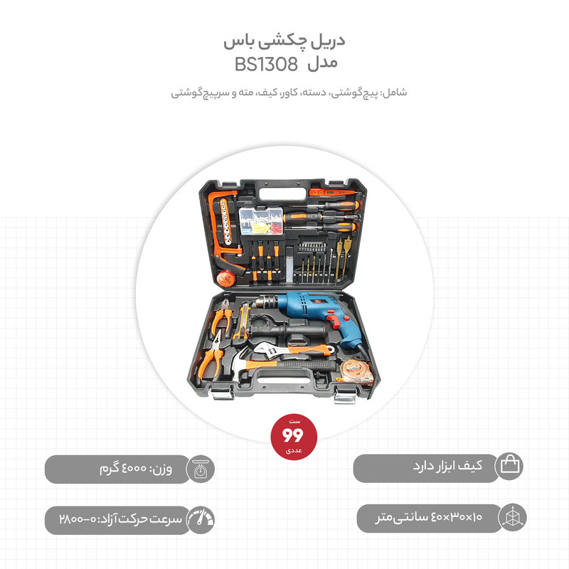 مجموعه 99 عددی دریل چکشی باس مدل BS1308
