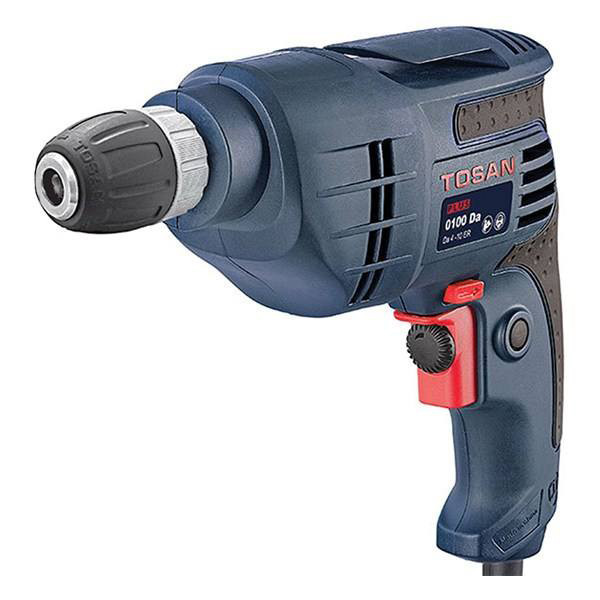 این دریل تمامی مشخصات یک دریل ساده را دارد. این محصول با طراحی ارگونومیک ساخته شده و به یک موتور قدرتمند مجهز است. قابلیت تنظیم سرعت دوران موتور برای این دستگاه وجود دارد. با استفاده از این محصول، سرعتعمل شما برای سوراخکاری اجسام مختلف قابلقبول است. مدل 0100Da یکی از دریلهای برقی است که شرکت «توسن» (Tosan) تولید میکند. این محصول یک دریل معمولی با موتوری قدرتمند است. موتور این دستگاه با توان 400 وات کار میکند. حداکثر سرعت گردش این محصول در حالت آزاد، به 2700 دوربردقیقه میرسد. سهنظام بهکاررفته در ساخت این دستگاه از نوع خودکار است و شما برای تعویض مته به آچار نیازی پیدا نمیکنید. این ویژگی، سرعتعمل شما را در انجام سوراخکاریهای متعدد بالا میبرد. در نظر داشته باشید که حداکثر قطر متهای که در سهنظام این محصول قرار میگیرد، 10 میلیمتر است. از این دریل برقی در مصارف خانگی و تجاری استفادهی فراوانی میشود. شرکتهای داخلی و خارجی، دریلهای برقی گوناگونی تولید و عرضه میکنند؛ اما شرکت توسن با تولید چند مدل دریل برقی معمولی، امکان تهیهِی این دستگاه را با پرداخت هزینهای مناسب فراهم کرده است. شاید کیفیت ساخت محصولات این شرکت در حد شرکتهایی نظیر دیوالت یا بوش نباشد؛ اما قیمت در نظر گرفتهشده برای تهیهی دریلهایی که توسن تولید میکند، بسیار مناسب است. مدل 0100Da یک دریل معمولی با موتور 400 وات است. این دریل به یک سهنظام خودکار مجهز شده که برای تعویض مته، به استفاده از ابزار نیازی ندارد.