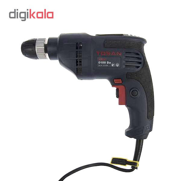 این دریل تمامی مشخصات یک دریل ساده را دارد. این محصول با طراحی ارگونومیک ساخته شده و به یک موتور قدرتمند مجهز است. قابلیت تنظیم سرعت دوران موتور برای این دستگاه وجود دارد. با استفاده از این محصول، سرعتعمل شما برای سوراخکاری اجسام مختلف قابلقبول است. مدل 0100Da یکی از دریلهای برقی است که شرکت «توسن» (Tosan) تولید میکند. این محصول یک دریل معمولی با موتوری قدرتمند است. موتور این دستگاه با توان 400 وات کار میکند. حداکثر سرعت گردش این محصول در حالت آزاد، به 2700 دوربردقیقه میرسد. سهنظام بهکاررفته در ساخت این دستگاه از نوع خودکار است و شما برای تعویض مته به آچار نیازی پیدا نمیکنید. این ویژگی، سرعتعمل شما را در انجام سوراخکاریهای متعدد بالا میبرد. در نظر داشته باشید که حداکثر قطر متهای که در سهنظام این محصول قرار میگیرد، 10 میلیمتر است. از این دریل برقی در مصارف خانگی و تجاری استفادهی فراوانی میشود. شرکتهای داخلی و خارجی، دریلهای برقی گوناگونی تولید و عرضه میکنند؛ اما شرکت توسن با تولید چند مدل دریل برقی معمولی، امکان تهیهِی این دستگاه را با پرداخت هزینهای مناسب فراهم کرده است. شاید کیفیت ساخت محصولات این شرکت در حد شرکتهایی نظیر دیوالت یا بوش نباشد؛ اما قیمت در نظر گرفتهشده برای تهیهی دریلهایی که توسن تولید میکند، بسیار مناسب است. مدل 0100Da یک دریل معمولی با موتور 400 وات است. این دریل به یک سهنظام خودکار مجهز شده که برای تعویض مته، به استفاده از ابزار نیازی ندارد.