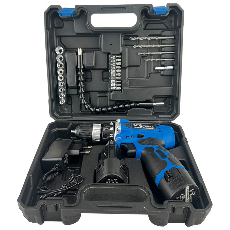 دریل پیچگوشتی شارژی 12 ولت ویوارکس مدل VR1210V-22A دارای موتوری قدرتمند است که میتواند به حداکثر دور موتوری برابر با 1500 دور بر دقیقه در حالت آزاد دست پیدا کند. تورکمتر 18 به اضافه حالت حالت مته که روی سه نظام دستگاه تعبیه شده به کاربران این امکان را میدهد که بنا به موقعیت بتوانند از قدرت های متفاوت این دریل شارژی استفاده کنند. و دکمه ی مجزا 2 سرعته تعبیه شده برای این محصول کاربران را قادر میسازد تا با توجه به نیاز خود بتوانند سرعت و قدرت گردش این دریل را تنظیم نمایند. به تمامی امکاناتی که اشاره شد کلید گازی این محصول برای تنظیم سرعت را اضافه کنید و کلید تغییر حالت گردش چپگرد-راستگرد تعبیه شده برای این محصول به کاربران کمک میکند تا بدون هیچ مشکلی به باز و بستن پیچها و سوراخکاری در متریالهای مختلف بپردازد. از دیگر مزایای این محصول میتوان به نمایشگر شارژر باطری روی بدنه و چراغ ال ای دی برای روشن کردن محل سوراخکاری و داشتن 2 باتری لتیومی 12 ولت 1.5 آمپر و شارژر خشابی اشاره کرد. سه نظام تعبیه شده برای این محصول از نوع اتوماتیک با سایز 10 میلیمتری بوده که با دقت بالایی ساخته شده است همچنین وجود ست کامل از سریها و متههای مورد نیاز و متداول در یک کیف BMC پرتابل عرضه میگردد، تا کاربران نگرانی بابت صدمه دیدن محصول برای حمل و جابه جایی نداشته باشند.