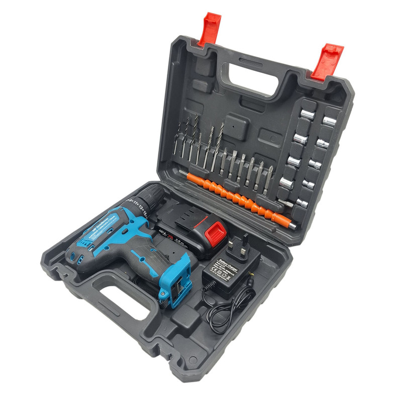 دریل چکشی شارژی مسترز 10 میلی متری 48 ولت مدل 48VF مجموعه 25 عددی