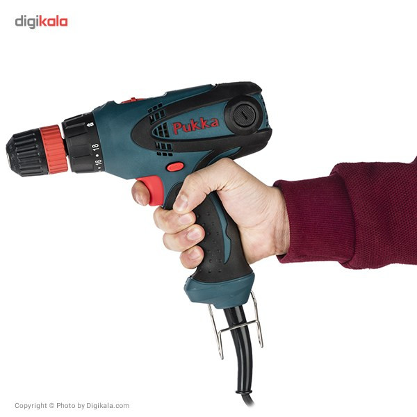 دریل پیچ گوشتی برقی فوق یکی از محصولات شرکت «پوکا» (Pukka) است. این دستگاه مدل «SD1010» نام دارد و توان آن 280 وات است. یکی از مزایای این پیچ گوشتی برقی قابلیت کنترل سرعت آن است. سرعت چرخش این دستگاه را میتوان در دو حالت 440-0 و 1650-0 دور بر دقیقه تنظیم کرد. میزان گشتاور این دستگاه نیز در 18 حالت قابل تنظیم بوده و از قابلیتهای یک دستگاه دریل و یک دستگاه پیچ گوشتی برخوردار است. در حالتی که سرعت چرخش کمتر است دستگاه در حالت پیچ گوشتی قرار میگیرد و در سرعت بالاتر، دستگاه مانند یک دریل عمل میکند. این دریل پیچ گوشتی از قابلیت چرخش در هر دو جهت برخوردار است. از دیگر مزیتهای این محصول میتوان به وجود یک لامپ ال ای دی در قسمت پایینی دسته آن اشاره کرد. سهنظام این دریل پیچ گوشتی خودکار بوده و سایزی 10 میلیمتری دارد.