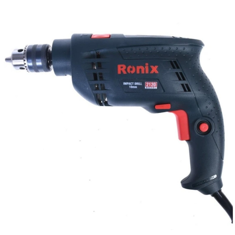 دریل چکشی 2120 رونیکس، با موتور قدرتمند 750 وات کار میکند که مجهز به آرمیچر و بالشتکهای صنعتی است. این قطعات مطابق آخرین استانداردهای روز دنیا ساخته شدهاند. این دریل، با ترکیب دو نیروی چرخشی و ضربهای، سوراخکاری معمولی و سوراخکاری چکشی را در سطوح بسیار سخت مانند انواع دیوار به آسانی انجام میدهد. حداکثر سرعت گردش در این دریل چکشی پرقدرت، 2800 دور در دقیقه است که به وسیله کلید الکترونیک دیمردار تنظیم میشود. سه نظام تمام فلزی، مستحکم و آچاری دریل 2120 رونیکس، 10 میلیمتری بوده و در کنار بدنه ارگونومیک، کوچک و 1.6 کیلوگرمی این دریل، قابلیت چکشی و قدرت مانور بالایی را در زوایای مختلف و مکانهای تنگ و محدود ایجاد میکند.