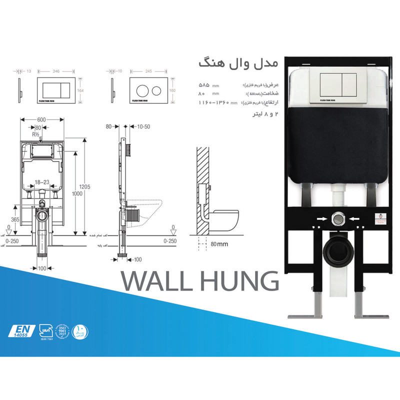 فلاش تانک توکار در حقیقت همان سیفون های رایجی است که در اغلب سرویس های بهداشتی مورد استفاده قرار می گیرد ولی فلاش تانک های توکار مزیتی که دارد، این است که به صورت مخفی و در پشت دیوار تعبیه شده به همین دلیل این نوع فلاش تانک به وسیله یک پنل کلید کوچک که بر روی دیوار نصب می گردد، قابل کنترل و هدایت است. این نوع فلاش تانک ها چون در داخل دیوار نصب می شوند فضای داخل سرویس بهداشتی را اشغال نمی کنند به همین دلیل امروزه با پیشرفت آپارتمان نشینی و عدم فضای کافی برای سرویس بهداشتی، کاربرد فلاش تانک توکار توسعه بیشتری نسبت به سایر فلاش تانک ها داشته است.فلاش تانک توکار ایران مدل وال هنگ محصولی از کارخانه فلاش تانک ایران میباشد که در راستای مرتفع کردن این علاقه و نیاز تولید میگردد. فلاش تانک ایران با ضخامت ۸ سانتی متری از پلاستیک درجه یک غیر بازیافتی تولید میگردد و از مکانیزم تخلیه با طراحی سویسی بهره میبرد. کلید این مدل فلاش تانک توکار در 2 طرح چهارگوش و دایره ای و با تنوع 10 رنگ می باشد.استراکچر بکار رفته از پروفیل سنگین با ضخامت بالا و رنگ کوره ای تولید شده که در برابر زنگ زدگی و خمیدگی بسیار مقاوم هست.مکانیزم تخلیه کاملا بیصدا، پرشدن مخزن با هر فشار آب حتی فشار آب کمتر از ۰٫۵ بار، گذراندن ۵۰۰ هزار بار تست به صورت موفقیت آمیز و استفاده از مواد اولیه درجه یک در ساخت این محصول از دیگر نقات قوت آن میباشد.