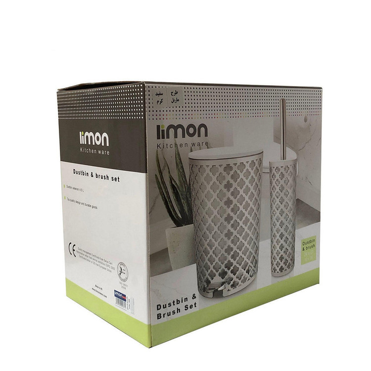 ست سطل زباله و فرچه لیمون مدل ماربل