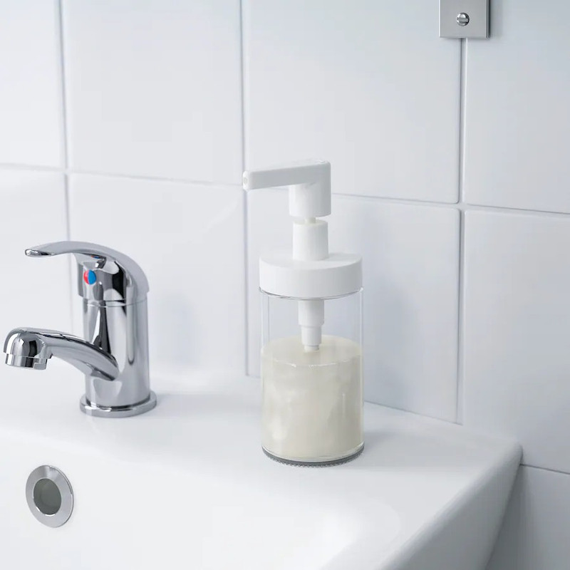 برای شستن دستها در سرویس بهداشتی یا حتی آشپزخانه میتوان از پمپ مایع دستشویی مدل «Tackan» که از محصولات برتر برند «Ikea» (ایکیا) است، استفاده کنید. این پمپ در مقایسه با سایر محصولات موجود در بازار، طراحی متفاوت و منحصربهفردی دارد و لوازم موردنیاز در سرویس بهداشتی و حمام را بهخوبی تکمیل خواهد کرد. این مدل بدنهای شفاف دارد که از شیشه ساخته شده است. مخزن شفاف این مدل مشاهده مقدار مایع باقیمانده را برایتان ممکن میسازد تا در صورت کم شدن مقدار مایع دستشویی، به فکر پر کردن آن باشید؛ علاوه بر این شفاف بودن مخزن مایعهای رنگی را بهتر به نمایش میگذارد. یکی از تفاوتهای پمپ «ایکیا» با سایر محصولات، دهانهی بهنسبت بزرگ آن است. بزرگ بودن دهانه باعث میشود راحتتر مخزن را از مایع پر کنید. بعد از ریختن مایع میتوانید درپوش را بهصورت پیچی روی مخزن محکم کنید. در قسمت بالایی درپوش یک نازل قرار دارد که با یک فشار آرام، مایع را از داخل مخزن به دستهایتان انتقال خواهد دارد. درپوش و نازل از پلاستیک پلیپروپیلن ساخته شدهاند و مانند بدنه از کیفیت بسیار خوبی برخوردار هستند؛ بنابراین بعد از گذشت زمان، ظاهر زیبا و کیفیتش تغییر نخواهد کرد. با ریختن مایع داخل مخزن مدل «Tackan»، بهراحتی دستهایتان را شستوشو خواهید داد.