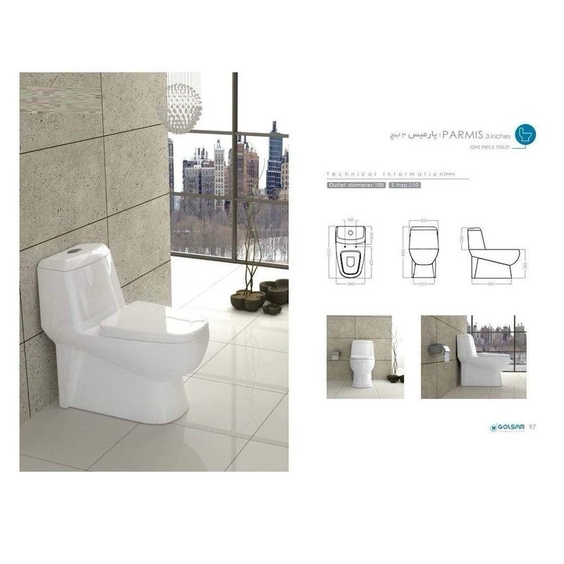 امروزه وجود توالت فرنگی در هر خانه ای ضروری می باشد. توالت زمینی یا ایرانی باعث فشار آمدن به زانو ها و پا ها می گردد. به توصیه پزشکان استفاده از این توالت ها برای افراد سالمند و دارای ناراحتی های خاص توصیه نمی شود. بنابراین استفاده از یک توالت فرنگی مناسب و راحت در خانه یا اداره یا هر مکان دیگری از اهمیت بالایی بر خوردار می باشد. در لحظه ورود به هر خانه یکی از مواردی که برای شما مهم است ، نوع چینی بهداشتی به کار رفته در سرویس و حمام می باشد. شرکت چینی بهداشتی گلسار فارس تولید کننده و عرضه کننده محصولات با کیفیت و متنوع می باشد. توالت فرنگی گلسار پارمیس ۳ اینچ از نوع یک تکه و با آکس تخلیه ۲۱ سانتی متر می باشد. ابعاد توالت فرنگی پارمیس سیم لس گلسار ۶۸*۳۹.۵*۶۹.۵ سانتی متر است.