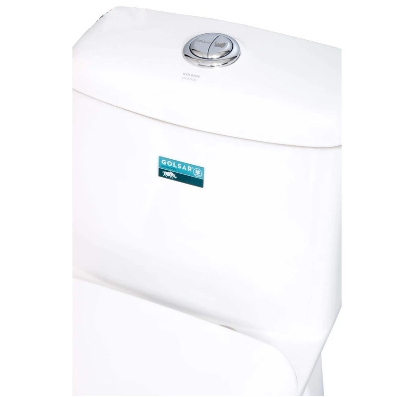 توالت فرنگی پارمیس سیم لس گلسار دارای آرام بند و خروجی ۱۰ سانتی متر می باشد. خروجی سیفون این توالت فرنگی به کف است. این توالت فرنگی در سه درجه برای مشتریان عرضه می گردد. توالت های فرنگی یک تکه در واقع نسل جدید توالت های دو تکه می باشند. سیستم تخلیه توالت از نوع واش دان و سیستم فلاش تانک آن دوزمانه است. تخلیه آب ۵.۵ لیتر در دقیقه و سرعت تخلیه ۳ ثانیه است.