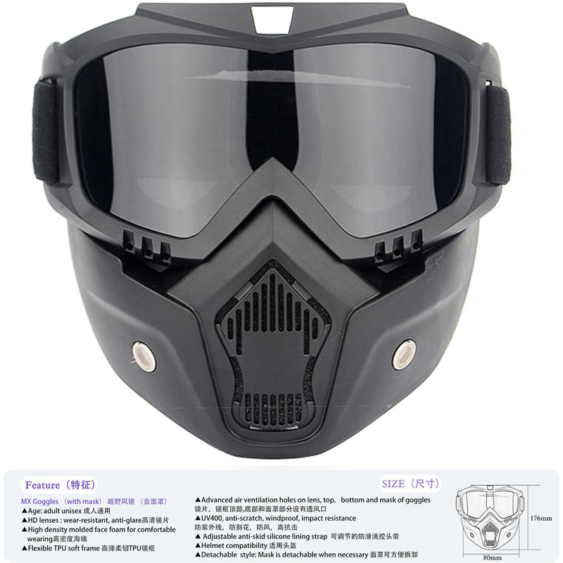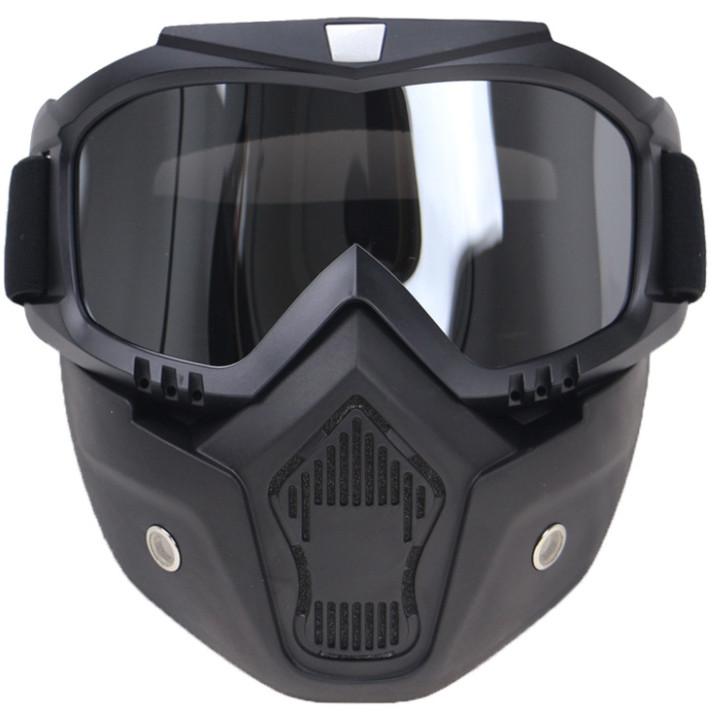 عینک goggles مدل 009 مناسب برای موتورسواری و اسکی و اسکیت میباشد و شیشه عینک به طوری است که با فیلتر کردن رنگ دودی از خستگی چشم در پیست اسکی و کوهستان های برفی جلوگیری میکند عینک goggles دارای ماسک فیلتر دار و با قابلیت دو تکه شدن هم استفاده به صورت عینک و هم استفاده به صورت عینک و فک مناسب برای تمام فصول و محیط میباشد کناره های داخل عینک ماسک از اسفنج نرم پوشیده شده که مانع از فشار به اطراف چشم میشود و می تواند همراه با کلاه کاسکت های موتورسیکلت بدون فک و بدون شیشه به راحتی استفاده شود