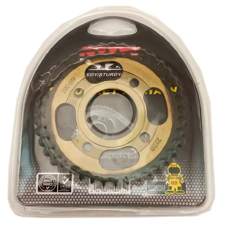 ست دنده زنجیر موتورسیکلت هوندا شامل : زنجیرـ دنده جلو ـ و دنده عقب و پیچ طبق میباشد. تعداد دندانه چرخ جلو 15 عدد و مناسب برای قدرت زیاد میباشد و چرخ عقب 38 دندانه دارد. این ست دنده زنجیر ساخت شرکت zizoچین بوده و کیفیت بالایی دارد.