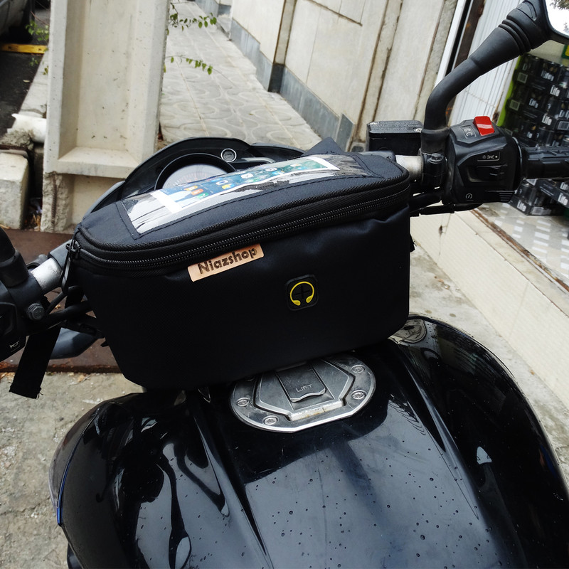 امروزه با توجه به سبک زندگی و محدودیت های استفاده از خودرو، استفاده از موتور سیکلت برای حمل و نقل بسیار متداول شده است. اکثر راکبان موتورسیکلت نیز نیازمند به استفاده از کیف و محفظه ای برای قرار دادن لوازم ضروری خود هستند. محصولی که معرفی می نماییم کیف موتور سیکلت نیازشاپ مدل NS1010 می باشد. این محصول یک کیف مخصوص موتور سیکلت است که از مواد اولیه درجه یک تولید شده است. جنس رویه این کیف موتورسیکلت از برزنت ضد آب و قسمت داخلی آن از ترکیب چرم و روکش ضد ضربه است که باعث می شود هنگام بارندگی نیز به راحتی بتوانید از آن استفاده کنید. این کیف موتور سیکلت بالای سر باک قرار می گیرد و با دو بند اتصال به فرمان محکم می شود. در قسمت بالای این کیف مخصوص موتور سیکلت فضایی برای قرار دادن موبایل طراحی شده که استفاده از صفحه حساس به تاچ موبایل باعث می شود بتوانید از تاچ موبایل نیز بهره ببرید. همچنین در قسمت جلوی این کیف موتور سیکلت فضایی برای خروج هندزفری موبایل قرار دارد که می توانید هندزفری را پس از اتصال به تلفن همراه از ان قسمت خارج نمایید. اتصال و جداسازی این کیف موتور سیکلت توسط قلاب های سگک دار به راحتی انجام می شود. به منظور جلوگیری از نفوذ رطوبت به داخل محفظه موبایل این کیف موتورسیکلت محل ورود موبایل به محفظه از داخل کیف در نظر گرفته شده است. ابعاد این کیف مخصوص موتور سیکلت 11 × 15 × 26 سانتی متر است و فضایی حدود 4 لیتر را مهیا می نماید. می توانید از این کیف موتور سیکلت برای قرار دادن لوازم ضروری خود، موبایل، خوراکی، مدارک و... استفاده نمایید. در صورتی که از موتور سیکلت برای حمل و نقل استفاده می نمایید و قصد تهیه یک کیف کاربردی برای قرار دادن لوازم ضروری خود در حین رانندگی را دارید، این کیف موتور سیکلت می تواند انتخاب مناسبی برای شما باشد.