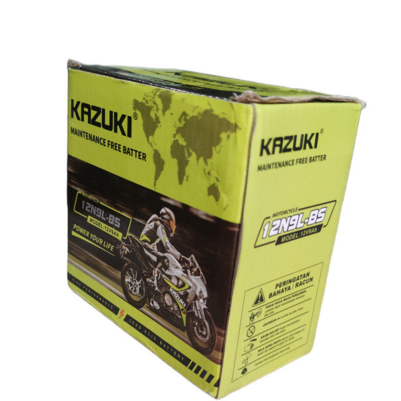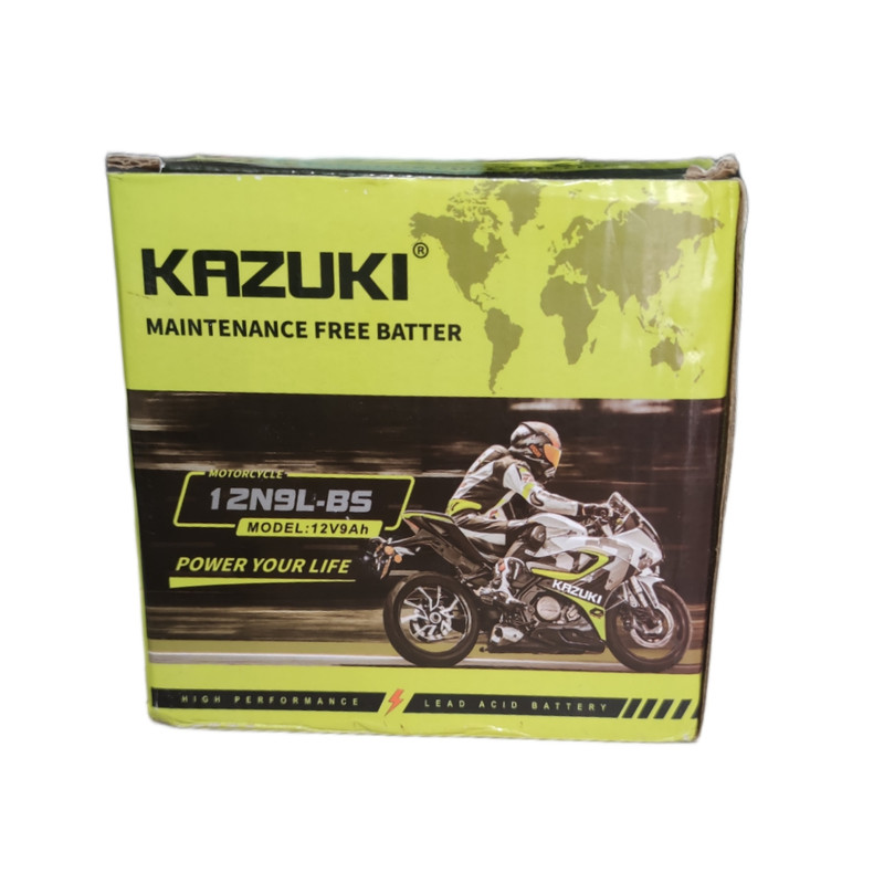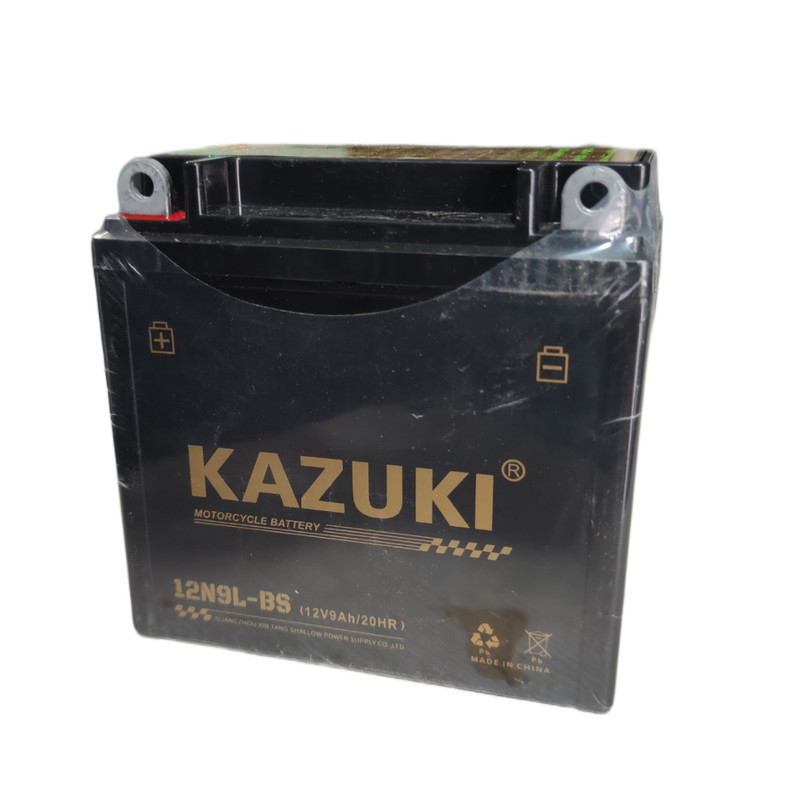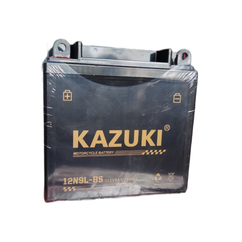 باتری 9 آمپر بلند برند کازوکی محصول کشور چین تحت لیسانس ژاپن ، با قدرت استارت بی نظیر و طول عمر مناسب و پایداری بالا، ابعاد باتری طول ۱۳.۵ سانتی متر و عرض ۷.۵ سانتی متر و ارتفاع ۱۳.۵ و وزن ۲.۹ کیلوگرم میباشد .