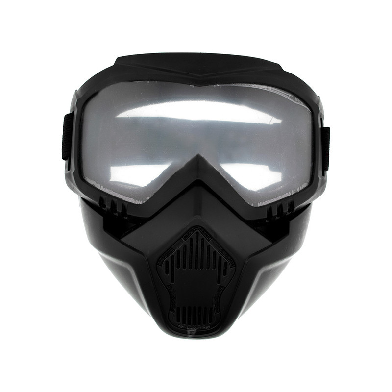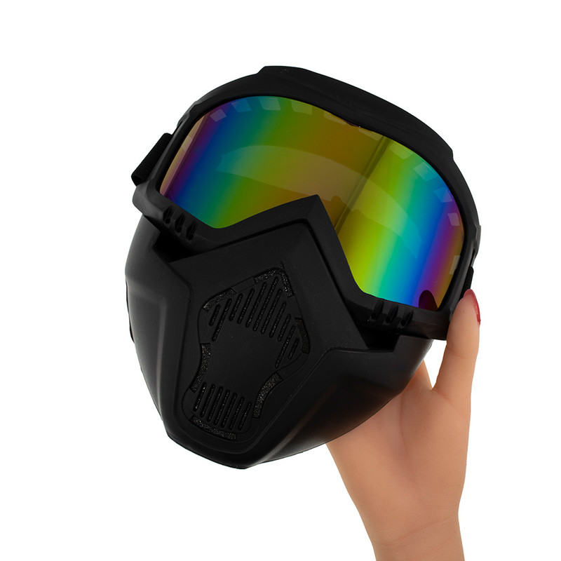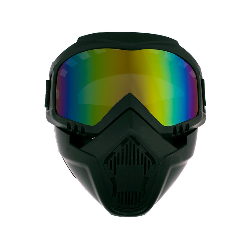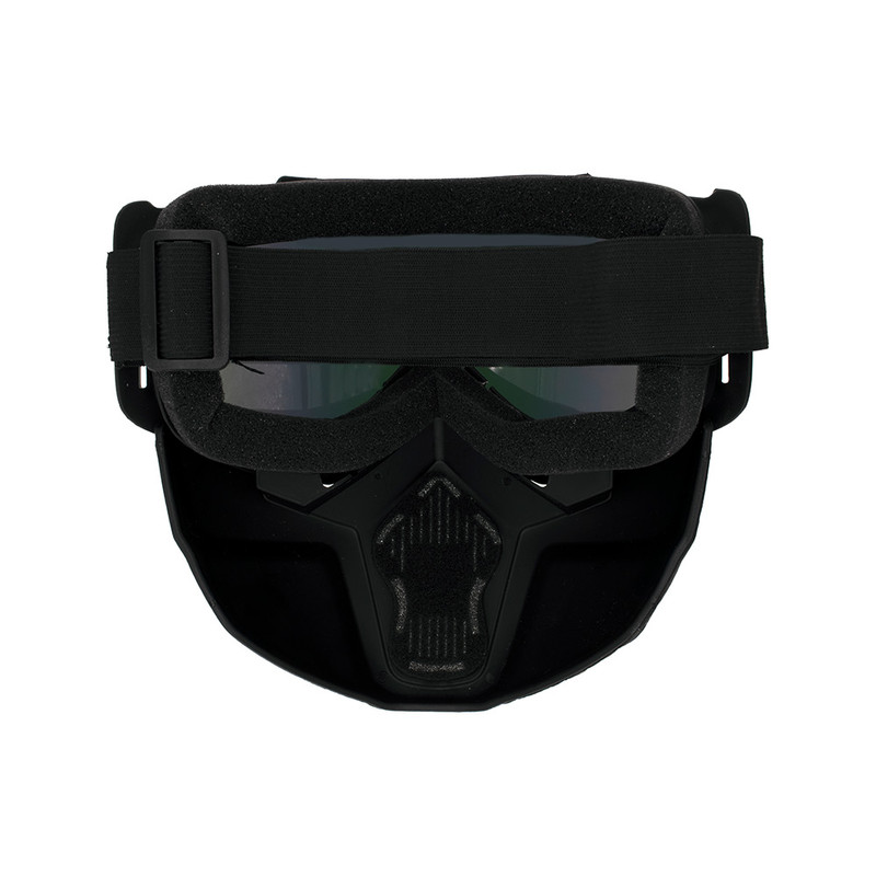 عینک موتور سواری مناسب برای موتورسواری، اسکی و اسکیت است. شیشه این عینک ، از خستگی چشم در پیست اسکی و کوهستان های برفی جلوگیری میکند.این عینک دارای ماسک فیلتر دار و قابلیت دو تکه شدن است که میتوان از آن به صورت عینک یا عینک و فک استفاده کرد. مناسب برای تمام فصول و محیط ها میباشد.کناره های داخل ماسک عینک از اسفنج نرم پوشیده شده که مانع از فشار به اطراف چشم میشود. همچنین، میتوان آن را همراه با کلاه کاسکت های موتورسیکلت بدون فک و بدون شیشه به راحتی استفاده کرد.