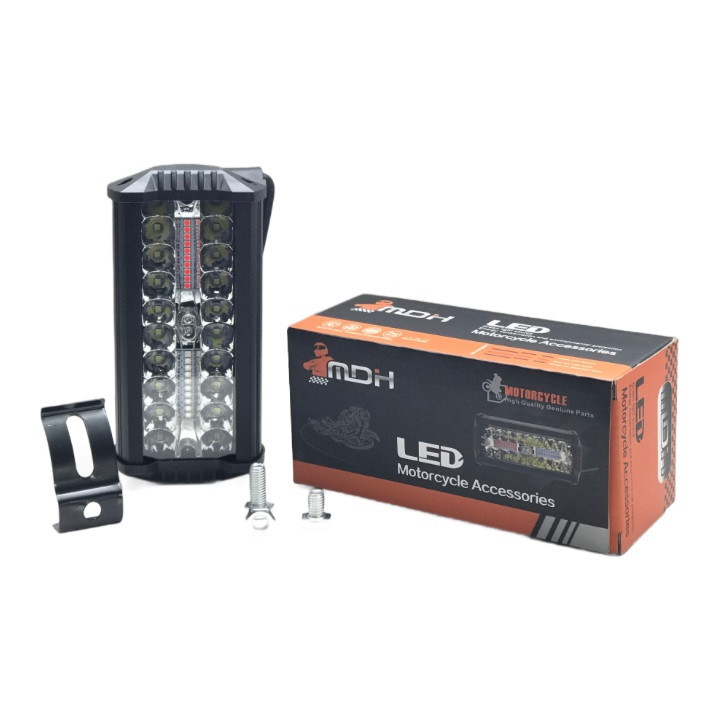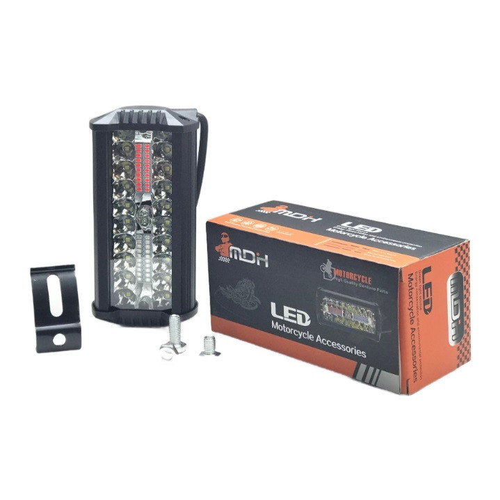 یکی از تجهیزات ضروری برای خودروهای آفرودی داشتن پرژکتور برای نور کافی در بیراهه نوردی است. پرژکتور MDH با وزن کم و نوردهی زیاد یک انتخاب مناسب برای خودروهای آفرودی میباشد. پروژکتور لایت بار آفرود نوع خاصی از پروژکتورهای LED هستند که به منظور نصب بر روی انواع خودروها طراحی شده اند . هدف از نصب اینگونه پروژکتورها بر روی ماشین و موتور سیکلت ، روشن کردن فواصل دور که معمولا نور پایین یا بالای وسیله نقلیه توانایی آن را ندارند می باشد . این گونه پروژکتورها گزینه مناسبی جهت دوستداران برنامه های آفرود ، کویرنوردی ، جنگل پیمایی و کمپینگ می باشد . این پروژکتور از نوع لامپ ال ای دی است و دارای یک پرتاب نور عالی برای کسانی که خودرو و موتور سیکلت های آفرود یا چهار چرخ دارند و علاقه به رانندگی در شب دارند بسیار وسیله کاربردی خواهد بود . همچنین این مدل ضد آب نیز هست و در برف و باران شما را تنها نخواهد گذاشت . با پایه ای که در بسته بندی وجود دارد میتوان روی یک سطح صاف آن را نصب کرد و به راحتی زاویه آن را تنظیم نمود . برای اتصال سیم ها نیز کافی است یک رشته سیم از لامپ بگیرید . دارای نور سفید و همچنین حالت چشمک زن و پلیسی است . خاصیت ضد آب و رطوبت این محصول باعث شده که در هر آب و هوایی قابل استفاده باشد .قابلیت نصب بر روی سقف یا جلو گارد خودرو و موتورسیکلت را دارد . بیش از 30000 ساعت عمر مفید و صرفه جویی در مصرف انرژی بالغ بر 70% از دیگر مزایا و قابلیت های این محصول منحصر به فرد می باشد . مناسب ترین نور برای روشنایی در شب است. زاویه پرتاب نور 15 درجه (بسته) بوده و برد روشنایی این مدل پروژکتور آفرود، حداقل 300 متر میباشد . این پروژکتور مناسب جهت نصب در خودروهای آفرود ، شاسی بلند ، خودوهای سبک و سنگین ، و همچنین انواع موتور سیکلت ها است . اگر کمپ میروید قطعا به چراغی که همه جا را روشن کند نیاز دارید پرژکتور ام دی اچ با لامپ پر قدرتی که دارد قطعا یک گزینه بسیار عالی برای تمام موتور سیکلت ها و خودرو های آفرودی با برق 12 ولت هست این محصول دارای 42 لامپ پاور ال ای دی پر قدرت با طیف روشنایی 20000 کلوین (سفید یخی ، قرمز ، آبی و سبز ) می باشد . دارای پایه جهت نصب ساده است .