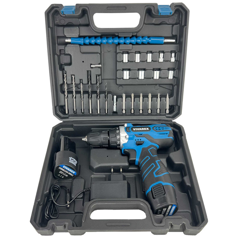 دریل پیچ گوشتی شارژی ویوارکس مدل VR12V-2A-BLUE مجموعه 28 عددی