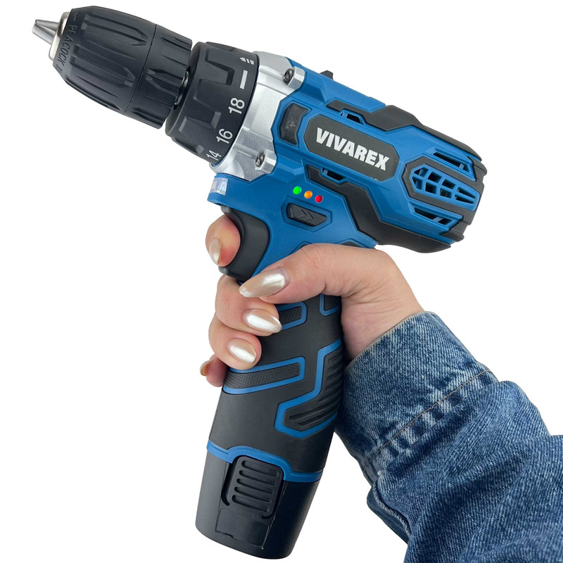 دریل پیچگوشتی شارژی 12 ولت ویوارکس مدل VR12V-2A-BLUE دارای موتوری قدرتمند است که میتواند به حداکثر دور موتوری برابر با 1500 دور بر دقیقه در حالت آزاد دست پیدا کند. تورکمتر 18 به اضافه حالت حالت مته که روی سه نظام دستگاه تعبیه شده به کاربران این امکان را میدهد که بنا به موقعیت بتوانند از قدرت های متفاوت این دریل شارژی استفاده کنند. و دکمه ی مجزا 2 سرعته تعبیه شده برای این محصول کاربران را قادر میسازد تا با توجه به نیاز خود بتوانند سرعت و قدرت گردش این دریل را تنظیم نمایند. به تمامی امکاناتی که اشاره شد کلید گازی این محصول برای تنظیم سرعت را اضافه کنید و کلید تغییر حالت گردش چپگرد-راستگرد تعبیه شده برای این محصول به کاربران کمک میکند تا بدون هیچ مشکلی به باز و بستن پیچها و سوراخکاری در متریالهای مختلف بپردازد. از دیگر مزایای این محصول میتوان به نمایشگر شارژر باطری روی بدنه و چراغ ال ای دی برای روشن کردن محل سوراخکاری و داشتن 2 باتری لتیومی 12 ولت (تولید سال 2024 میلادی) و شارژر خشابی اشاره کرد. سه نظام تعبیه شده برای این محصول از نوع اتوماتیک با سایز 10 میلیمتری بوده که با دقت بالایی ساخته شده است همچنین وجود ست کامل از سریها و متههای مورد نیاز و متداول در یک کیف BMC پرتابل عرضه میگردد، تا کاربران نگرانی بابت صدمه دیدن محصول برای حمل و جابه جایی نداشته باشند.