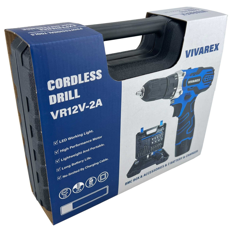 دریل پیچگوشتی شارژی 12 ولت ویوارکس مدل VR12V-2A-BLUE دارای موتوری قدرتمند است که میتواند به حداکثر دور موتوری برابر با 1500 دور بر دقیقه در حالت آزاد دست پیدا کند. تورکمتر 18 به اضافه حالت حالت مته که روی سه نظام دستگاه تعبیه شده به کاربران این امکان را میدهد که بنا به موقعیت بتوانند از قدرت های متفاوت این دریل شارژی استفاده کنند. و دکمه ی مجزا 2 سرعته تعبیه شده برای این محصول کاربران را قادر میسازد تا با توجه به نیاز خود بتوانند سرعت و قدرت گردش این دریل را تنظیم نمایند. به تمامی امکاناتی که اشاره شد کلید گازی این محصول برای تنظیم سرعت را اضافه کنید و کلید تغییر حالت گردش چپگرد-راستگرد تعبیه شده برای این محصول به کاربران کمک میکند تا بدون هیچ مشکلی به باز و بستن پیچها و سوراخکاری در متریالهای مختلف بپردازد. از دیگر مزایای این محصول میتوان به نمایشگر شارژر باطری روی بدنه و چراغ ال ای دی برای روشن کردن محل سوراخکاری و داشتن 2 باتری لتیومی 12 ولت (تولید سال 2024 میلادی) و شارژر خشابی اشاره کرد. سه نظام تعبیه شده برای این محصول از نوع اتوماتیک با سایز 10 میلیمتری بوده که با دقت بالایی ساخته شده است همچنین وجود ست کامل از سریها و متههای مورد نیاز و متداول در یک کیف BMC پرتابل عرضه میگردد، تا کاربران نگرانی بابت صدمه دیدن محصول برای حمل و جابه جایی نداشته باشند.