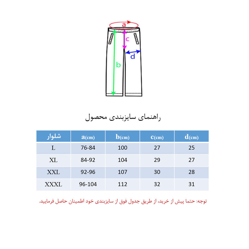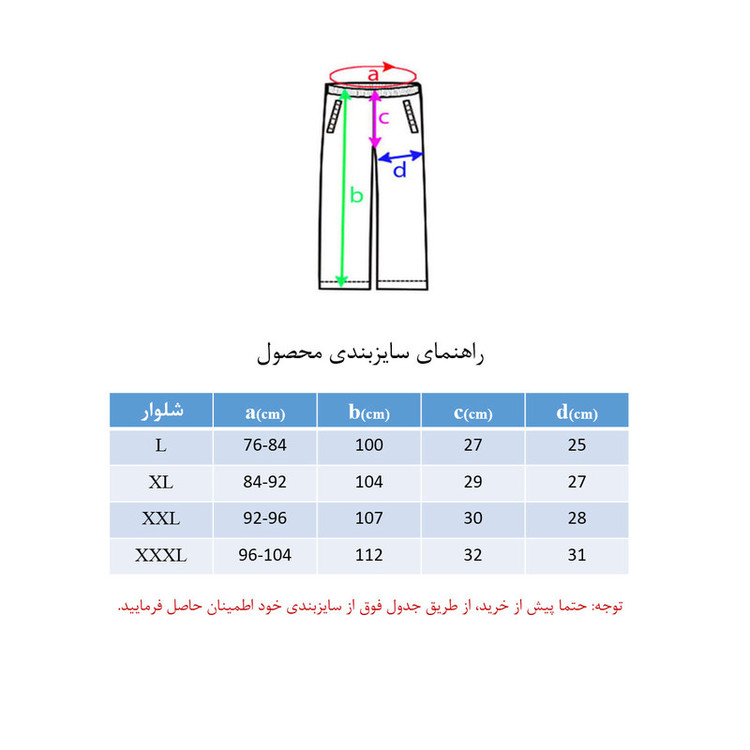 نگهداری: قبل از خرید توضیحات درج شده در جدول سایز را مطالعه کنید.