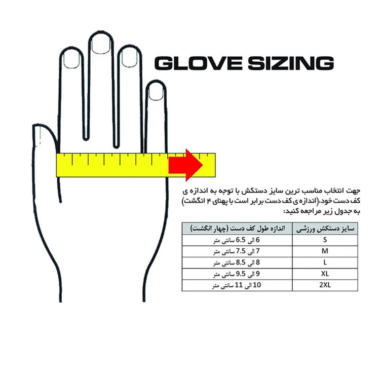 نگهداری: برای افزایش طول عمر دستکش، پس از هر تمرین آن را در محیط خشک و خنک قرار دهید، از شستشو با آب داغ خودداری کنید و ترجیحاً با دست و آب ولرم شسته و در هوای آزاد خشک کنید.