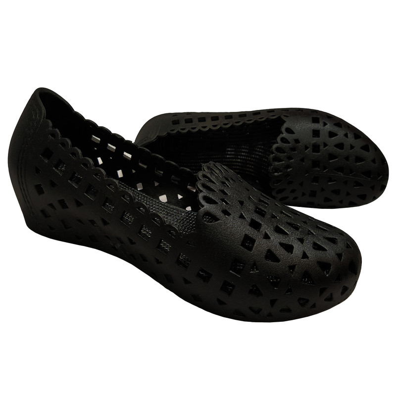کفش ساحلی زنانه مدل هلن ژله ای محصولی با کیفیت ساخت ایران(تبریز) است که از ترکیب مواد فوکو(نوعی پلاستیک فشرده شده ژله ای با چگالی بالا ،بسیار نرم و راحت) و پلی یورتان(جهت مقاومت بالاتر) تهیه شده است. این محصول زیبا و راحت کاملا قابل شست و شو بوده تا برای استفاده در ساحل ، استخر، باغ، جهت پیاده روی و... مناسب باشد.نرمی ، پاخور بسیار شیک و قیمت مدل هلن موجب شده تا به گزینه ای مناسب جهت استفاده روزمره، روفرشی یا محیط های آبی تبدیل شود.