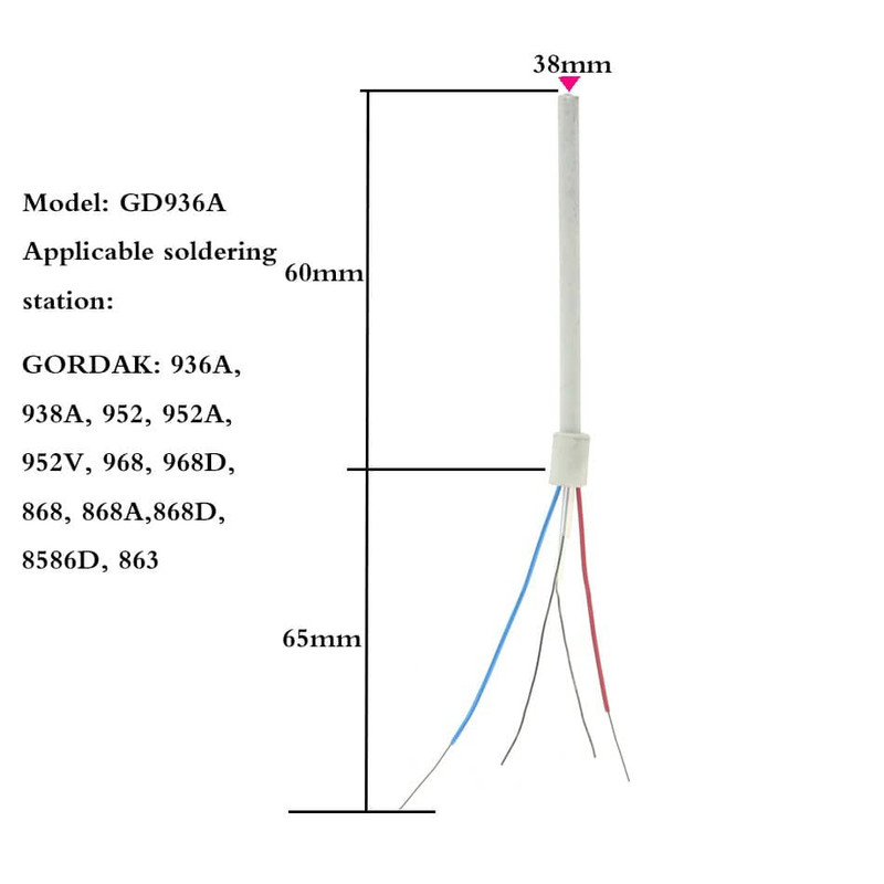 المنت یدکی هویه گرداک سرامیکی مناسب برای مدل های 936A . 938A . 952 . 952B . 952C . 952D . 952V . 968 . 968A . 968D . 863 . 902 24 ولت 50 وات