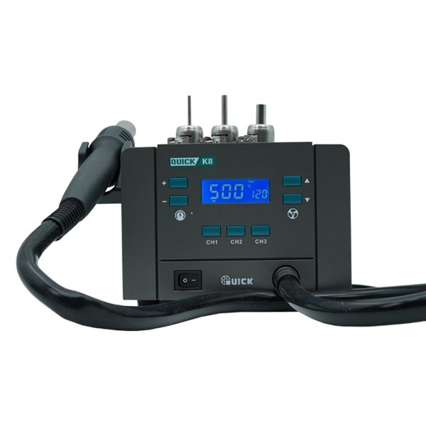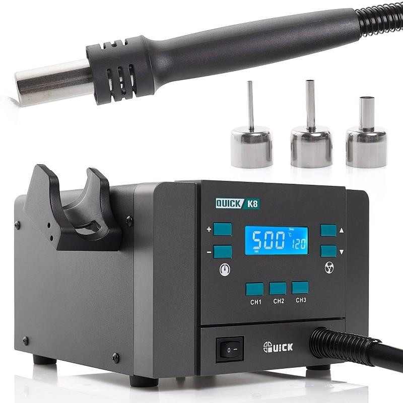 هیتر کوییک K8 – دستگاه حرفه ای و قوی شرکت QUICK است که دارای قدرت بالا 1000وات میباشد. این محصول دارای سیستم خواب خودکار هوشمند است که باعث صرفه جویی در مصرف انرژی و طول عمر بالای عناصر گرمایشی دستگاه میگردد. بدلیل وجود موتور بدون براش(brushless)، هیتر K8 اصطحاک کمتری ایجاد میکند و در استفاده طولانی مدت دستگاه داغ نمیشود. یکی دیگر از ویژگی های کوییک K8 صدای کم است که باعث افزایش طول عمر دستگاه میشود.