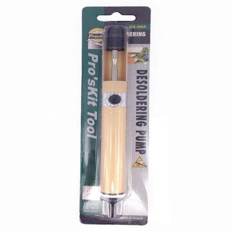 سایر توضیحات: قلع کش مدل 908-366A پروسکیت تایوان یک قلع کش با بدنه فلزی مرغوب است ، دارای قدرت مکش بالا (قدرت مکش 32cm-HG می باشد) و نوک یک تکه نسوز می باشد. این محصول ساخت تایوان و از مرغوبیت بالایی برخوردتر است.